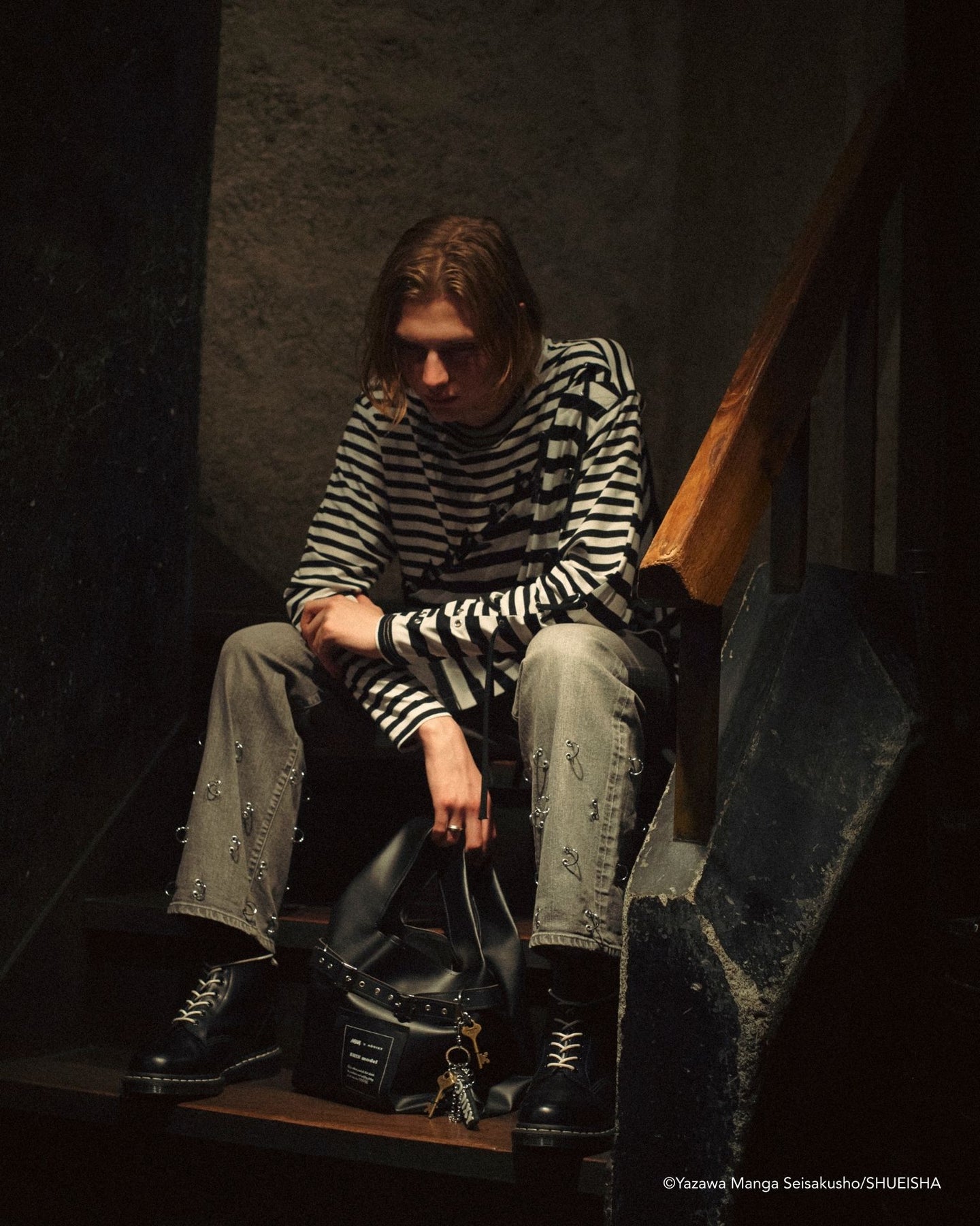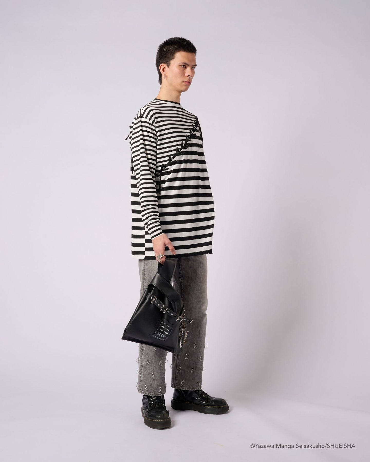 An original collaboration cloth tag is placed at the hem, adding a subtle touch to the simple T- shirt.
