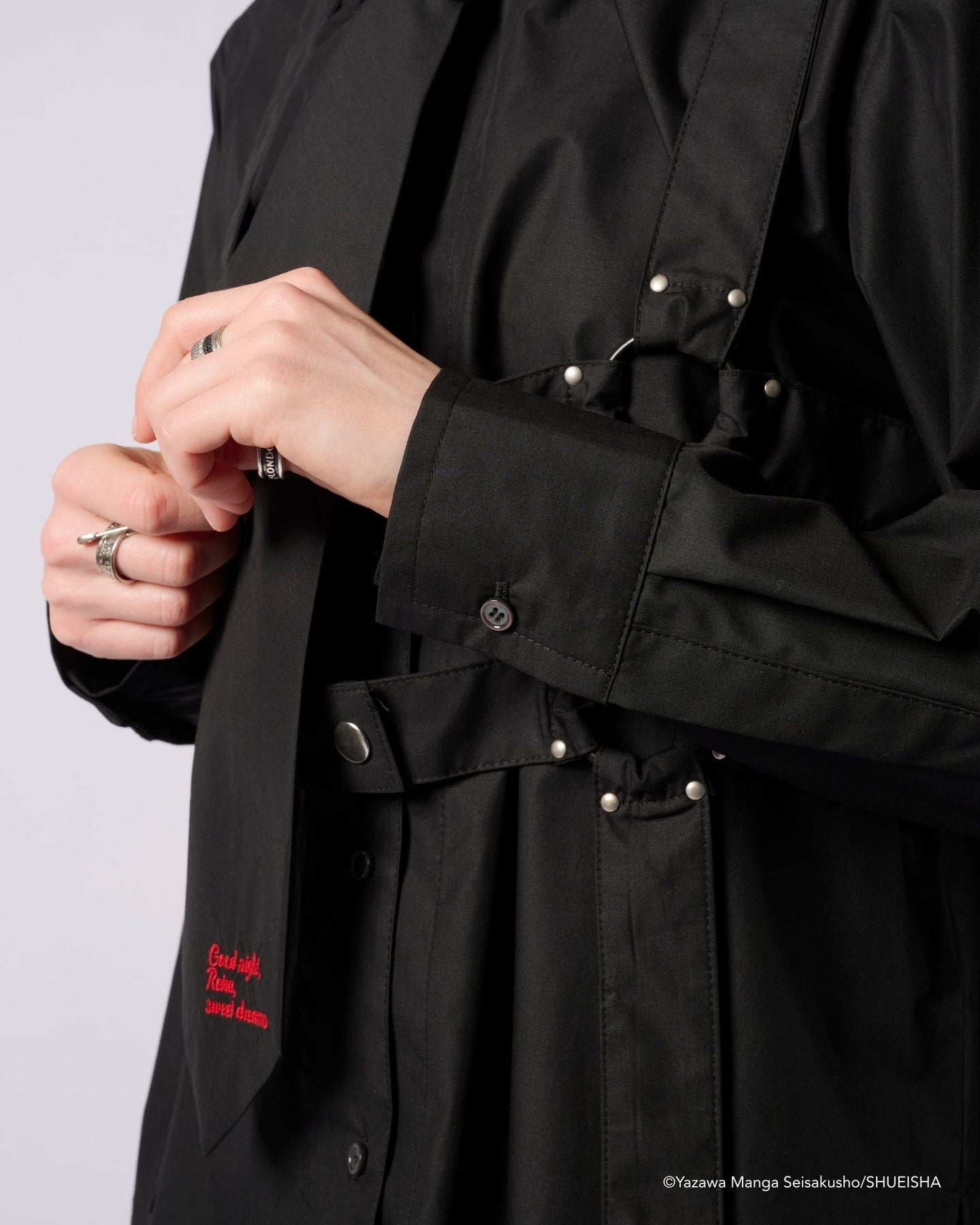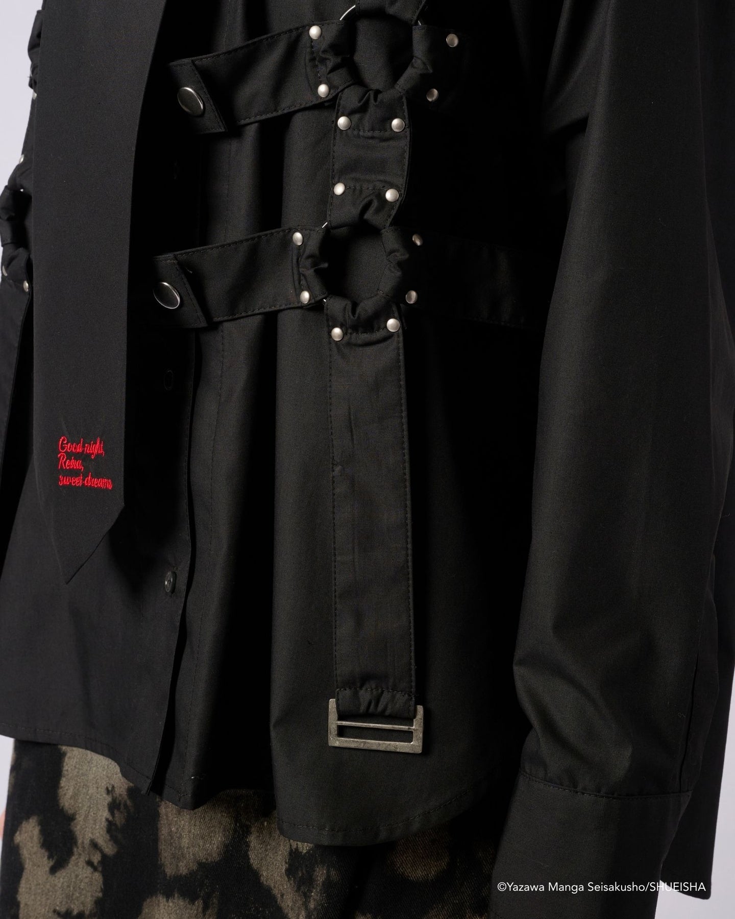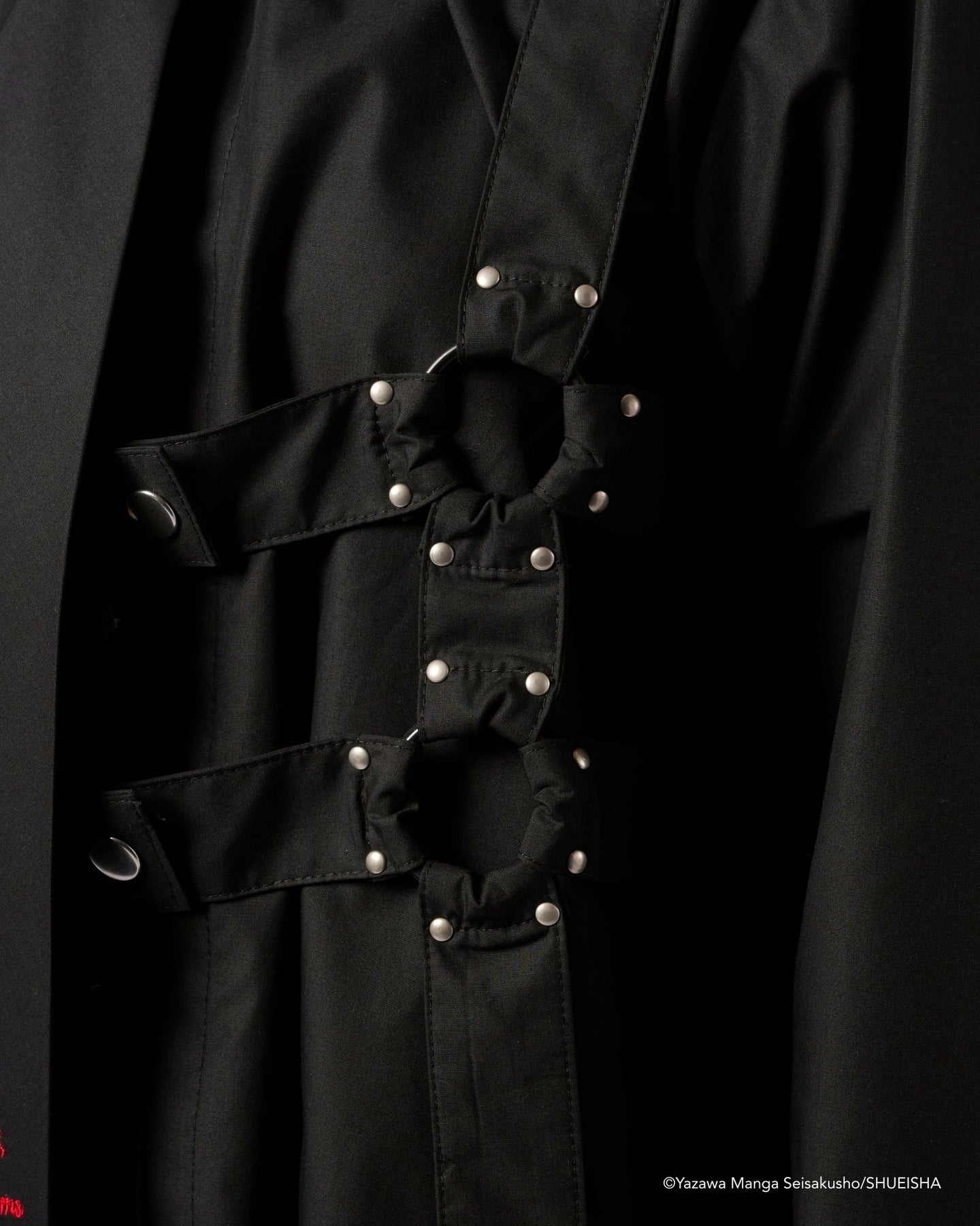 The multiple belt details on the front express the punk impression that Shin has.